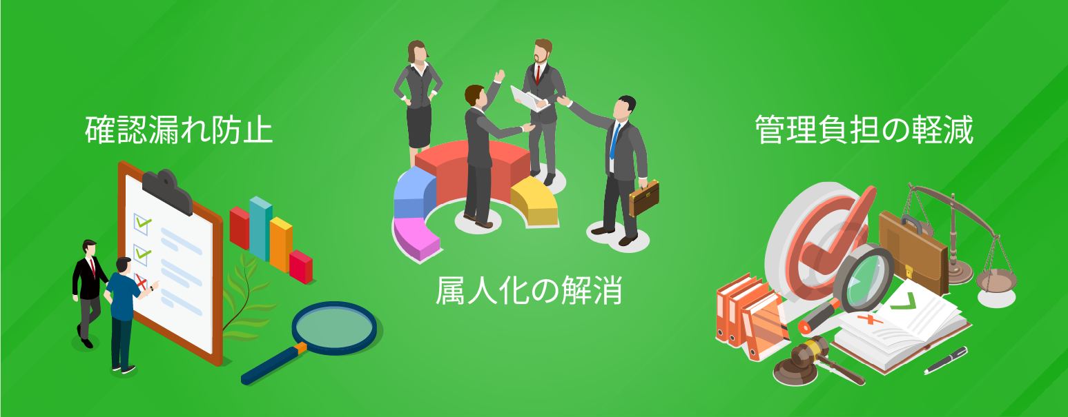 契約管理システムの導入は、担当者任せの契約管理・Excelによる煩雑な運用・帳票ルールのばらつきによって起こりやすい情報共有漏れや確認漏れを見直すうえで有効です。